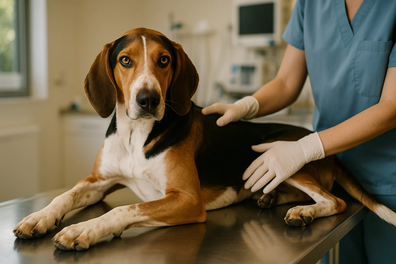 Ce chien vit dehors avec intensité. En forêt, dans les champs ou près des zones humides, il peut se blesser sur des branchages, des clôtures ou des rochers. Les coupures profondes et déchirures cutanées nécessitent rasage, parage, sutures et parfois antibiogramme (test de sensibilité bactérienne) pour guider la prise en charge. Une patte qui passe dans un trou peut entraîner entorse ou fracture. Les chutes sur terrain irrégulier imposent souvent radiographies, voire chirurgie orthopédique si l’articulation est instable.