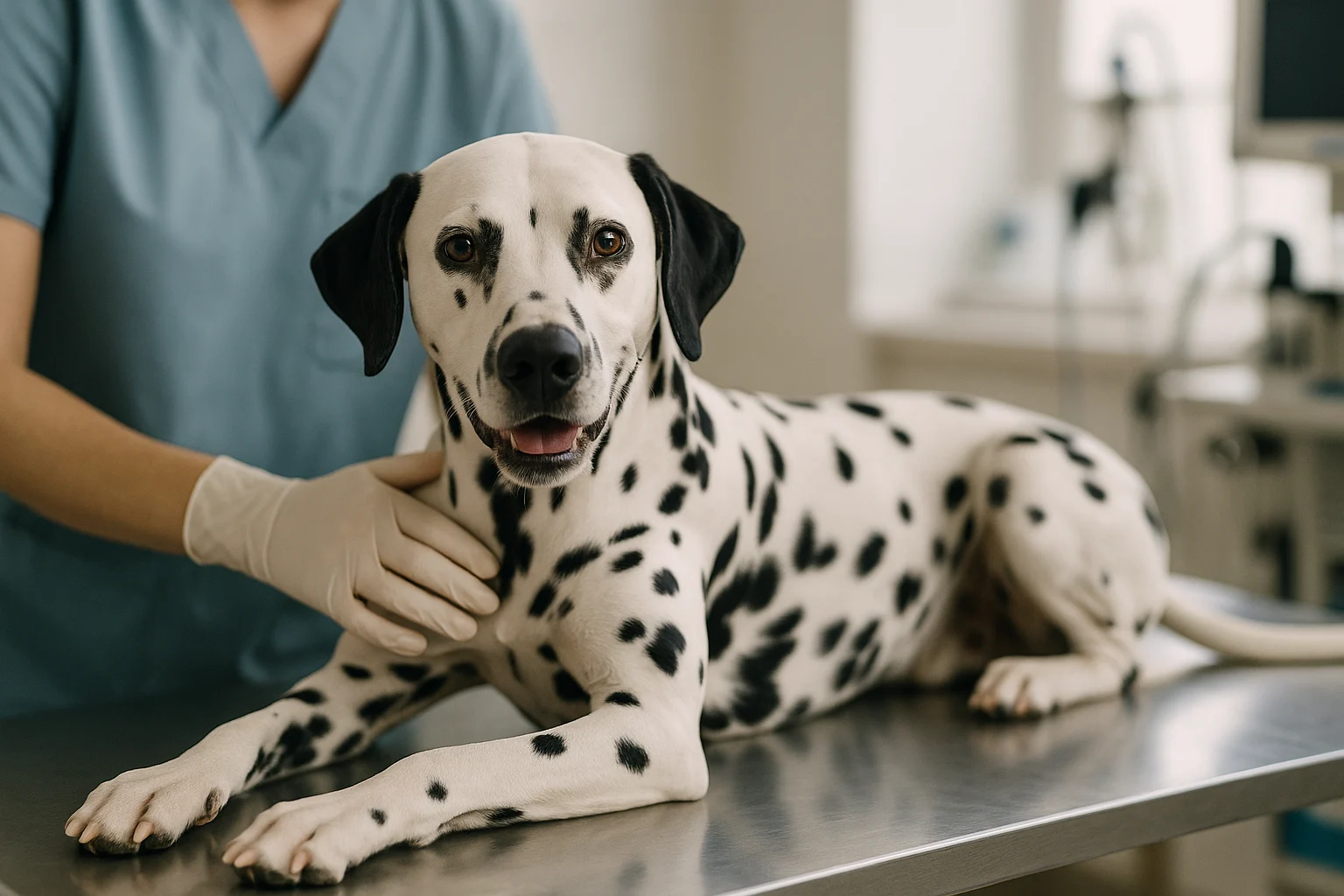 Très curieux, le Dalmatien explore avec la bouche. Ingestion de bâtons, jouets, chaussettes ou noyaux de fruits : les corps étrangers digestifs sont un classique. Selon la localisation, une endoscopie ou une chirurgie peut être nécessaire. Les activités aquatiques, qu’il apprécie souvent, exposent à des otites d’été si le séchage est insuffisant. En période de chaleur, sa robe claire et sa grande dépense énergétique imposent des pauses, de l’ombre et de l’eau fraîche pour éviter le coup de chaleur. Enfin, une simple balade urinaire peut mal tourner si un calcul se coince dans l’urètre, surtout chez le mâle, et impose une urgence immédiate.